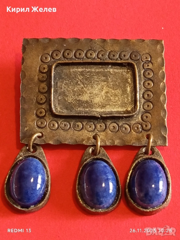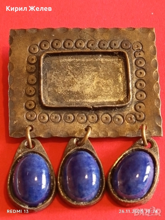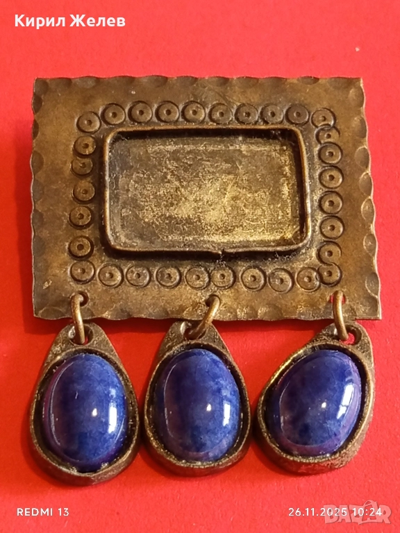 ЕТНО БРОШКА с МЕТАЛЕН ОБКОВ и СИНИ КАМЪНИ ЛАПИС ЛАЗУЛИ 52192