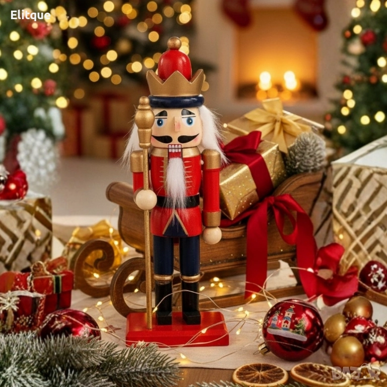 Материали: Дърво, безопасни бои на водна основа; Размери: около 7 см; Цветове: Класическа коледна комбинация – червено, златно, черно, синьо; Безопасност: Подходяща за семейства с деца; без остри или опасни части; Допълнителни елементи: Фина изработка, декоративни детайли; Подходящ за деца: Да – може да се използва и като играчка, и като декорация; Опаковка: Подходяща както за съхранение, така и за директно подаряване.