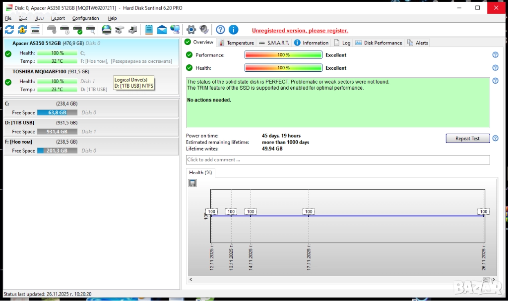 HDD TOSHIBA MQ04ABF100 USB 3.0 Статус Excellent (без проблеми)