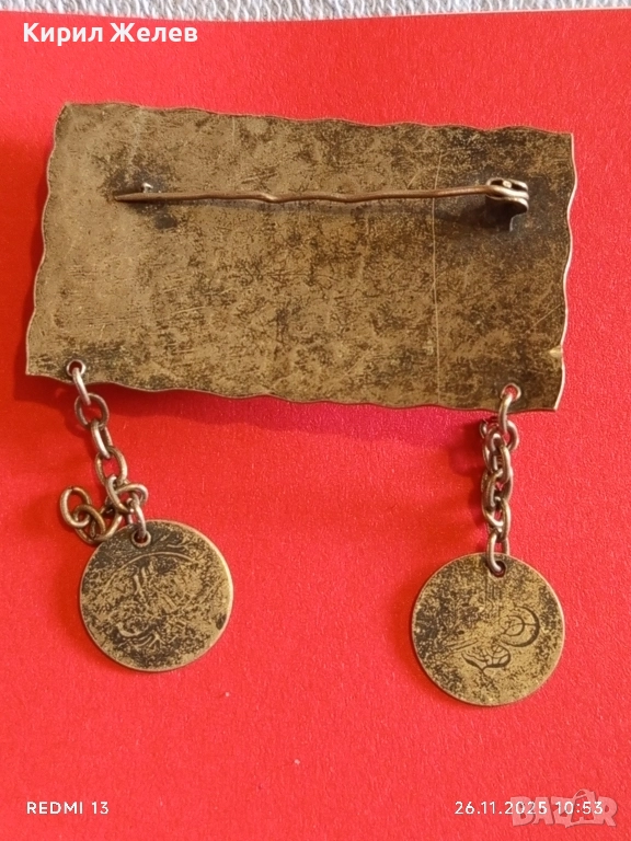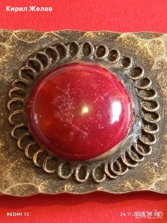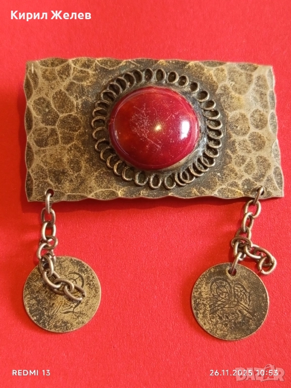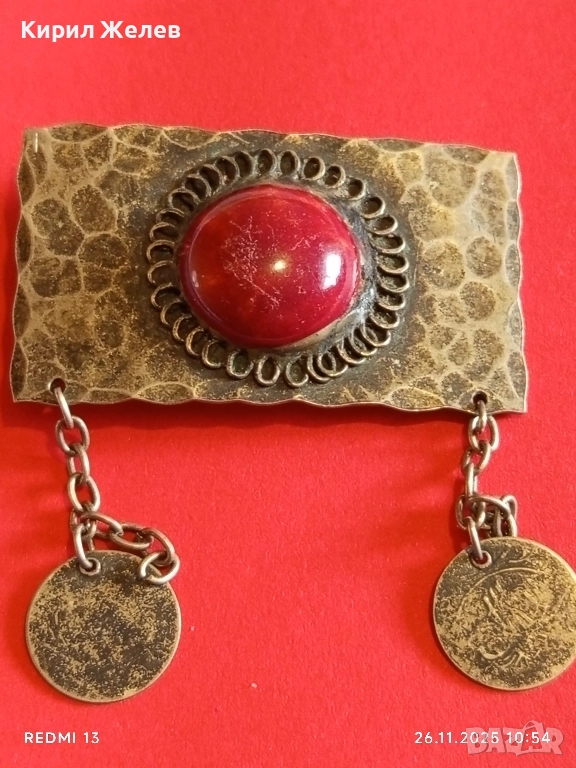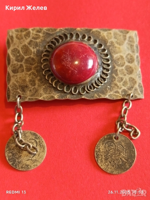 Винтидж брошка с филигран и червен камък АХАТ монети 52267