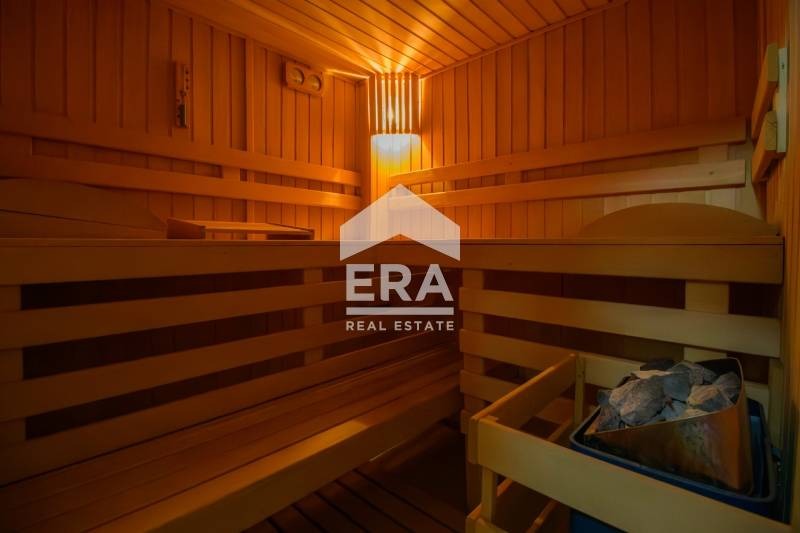 ЕРА Лайф обявява за продажба имот за ценители, с усет към лукс, комфорт и уют. Застроена площ 143 кв.м. и РЗП 302 кв.м. Имотът представлява двуетажна сграда със сутерен, в който се намира фитнес, класическа сауна, баня с тоалетна и помещение, в което е монтиран котел с дизелов двигател за отопление. На първия етаж е разположена просторна и много светла дневна, обособена на зони, включваща трепезна зона, оборудвана и обзаведена кухня, бар остров и камина, която внася усещане за домашен уют, закрита голяма тераса с джакузи и зона за хранене /тип зимна градина/, тоалетна и килер/перално. По вътрешни вити дървени стълби се стига до втория етаж, където са разположени четири спални, като родителската е със собствен санитарен възел, и три големи панорамни тераси към останалите спални, втора баня с тоалет на етажа.