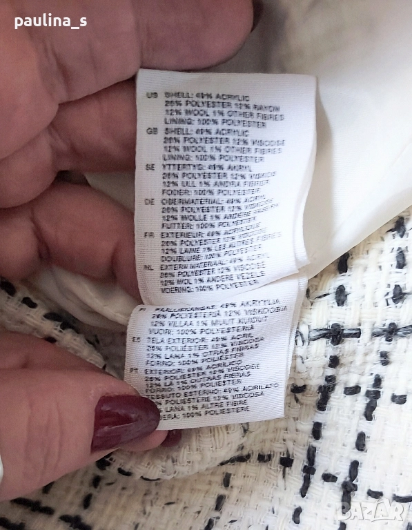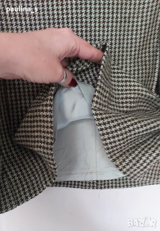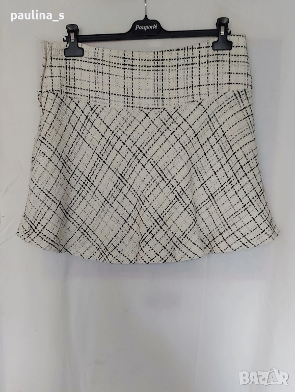 2️⃣. L / 2XL - Мини пола "H&M", бял пепит. Цената е крайна, без пазарлъци 19,99лв / 10 евро. Маркова пола с платка в горната част. Долната част е веревна и разкрояването е много дискретно и приятно падащо надолу. За зимния сезон. Качествена изработка, подобаваща на марката!