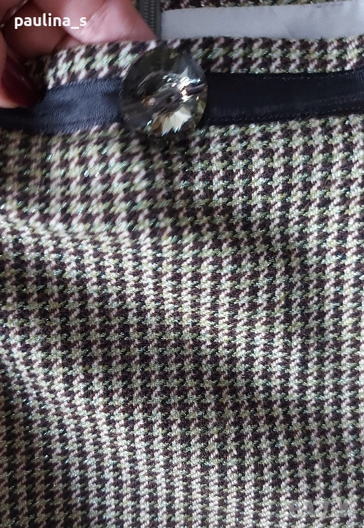 3️⃣. L / XL "Stella Nova". Цената е крайна, без пазарлъци 39,99лв / 20 евро. Дизайнерска пола с плохи отпред и голям зелен камък на декориращата лента на талията, съдържа вълна и не се мачка. Вечно актуална, с нормална талия. Полата блести със зелена ламена нишка, хастарът и коланът са отлично изработени, дрехата е Винтидж аутлет със съответна цена, уникат! Без дефекти, една бройка е, без етикет.