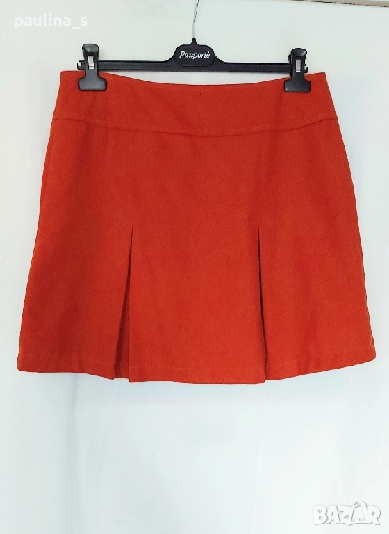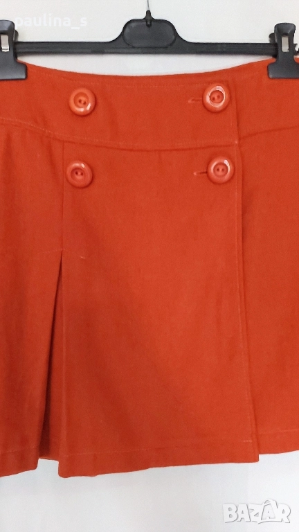 1️⃣. L / 2XL - "Promod". Цената е крайна, без пазарлъци 29,99лв / 15 евро. Оранжева пола, етикетът със състава е махнат, но съдържа вълна, кашмир и примеси, не помня точно колко %. Моделът е със застъпващо се двуредно закопчаване отпред. Силуетът е "камбанка" с плохи, симетрично разположени отпред и отзад. Полата е с хастар, изработката е перфектна, гарантирано от бранда. Като нова, обличала съм я веднъж за повод.