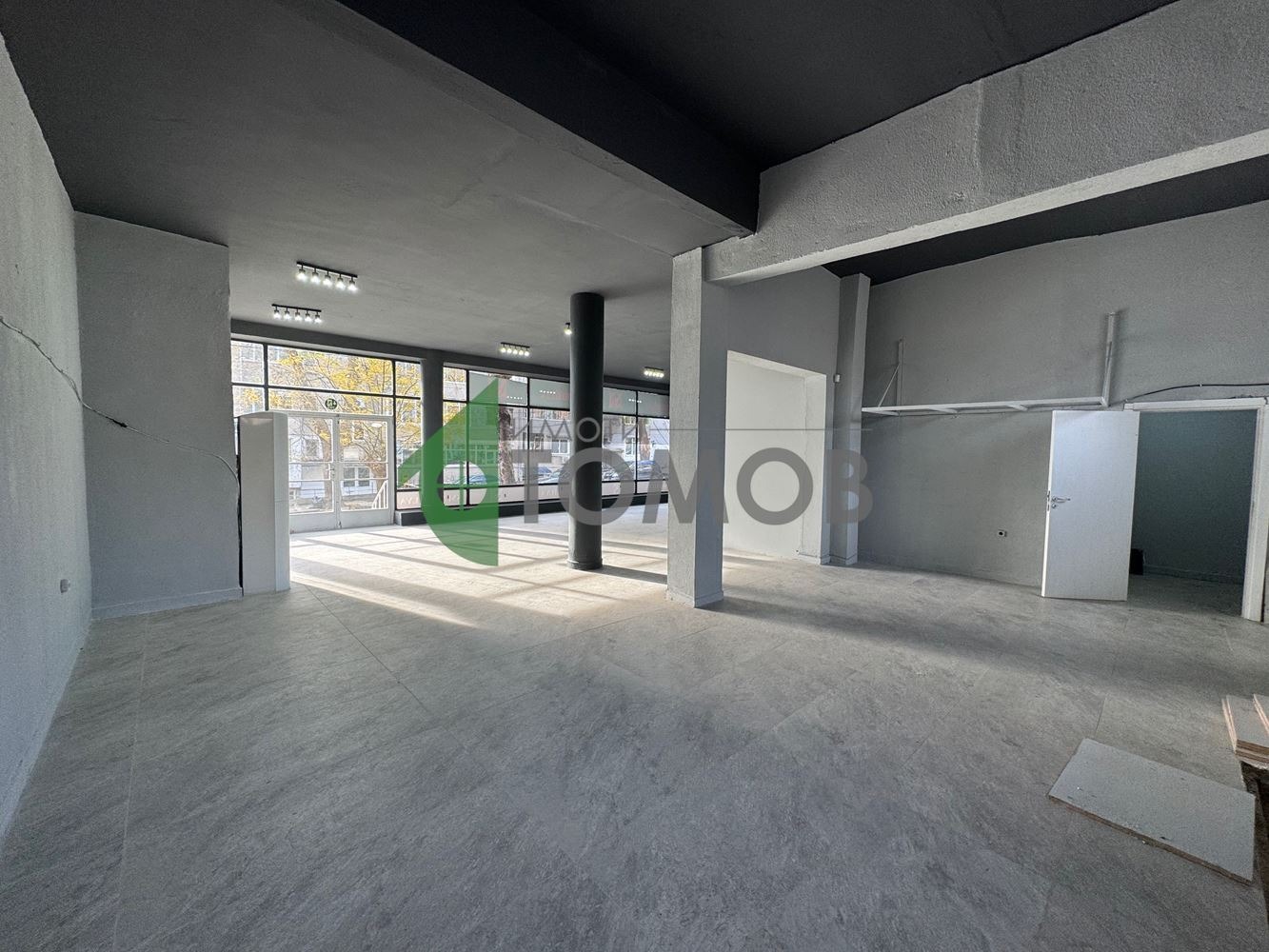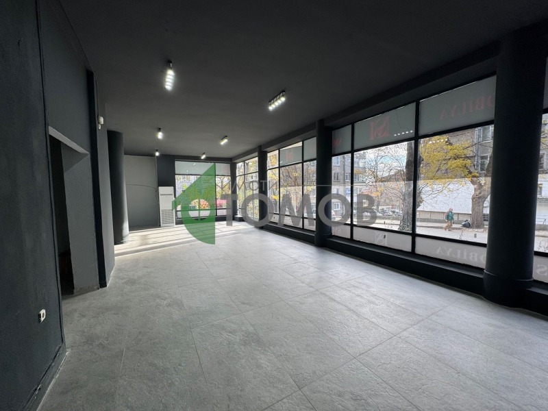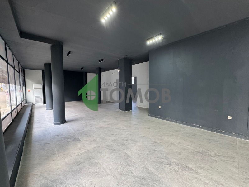 Имоти Томов представя на Вашето внимание търговско помещение под наем с площ от 269 кв.м. в района на математическа гимназия. Имотът е на партерен етаж и се състои от просторна търговска зала, две помощни помещения / склад, санитарно помещение и изба с достъп от основното помещение, която също може да се ползва като склад.