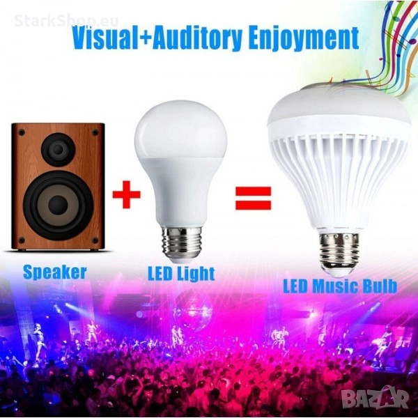 Топ хит Диско Блутуд Bluetooth колона крушка цвят музика лед RGB