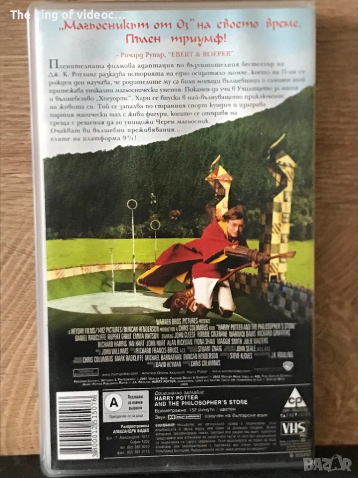 видеокасети Хари Потър . Хари Потър и филосовският камък 2001 година , времетраене 152 минути озвучен на български субтитри . Хари Потър и стаята на тайните 2002 година , времетраене 161 минути озвучен ва български език . Хари Потър и затворникът от азкабан 2004 година . Времетраене 136 минути , с български субтитри . Запазени и работят отлично . Продават се заедно . Цена 20 евро . Изпращам с Еконт или Спиди .