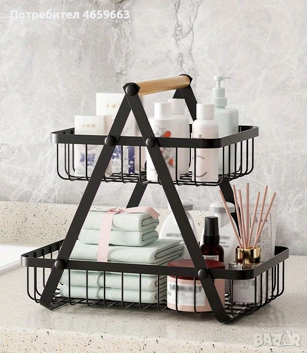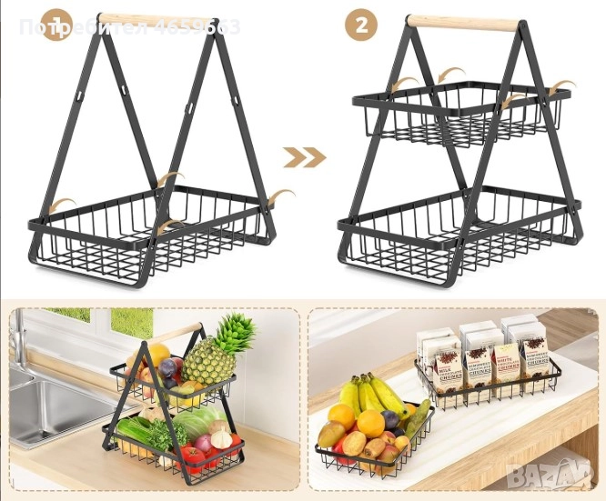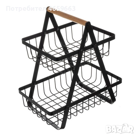 Кошница за плодове с 2 етажа, черна метална кошница за зеленчуци за кухнята, в стил лофт! 24265