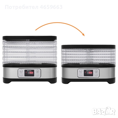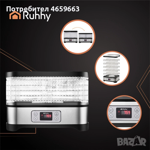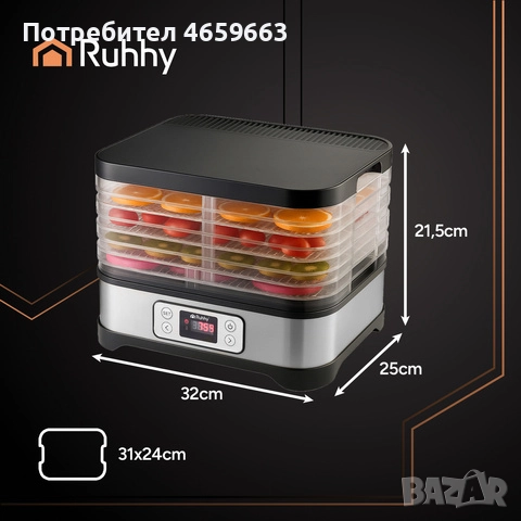 Дехидратор за храна, плодове, зеленчуци, гъби Ruhhy, Уред за сушене,LCD дисплей, Голям капацитет 10л