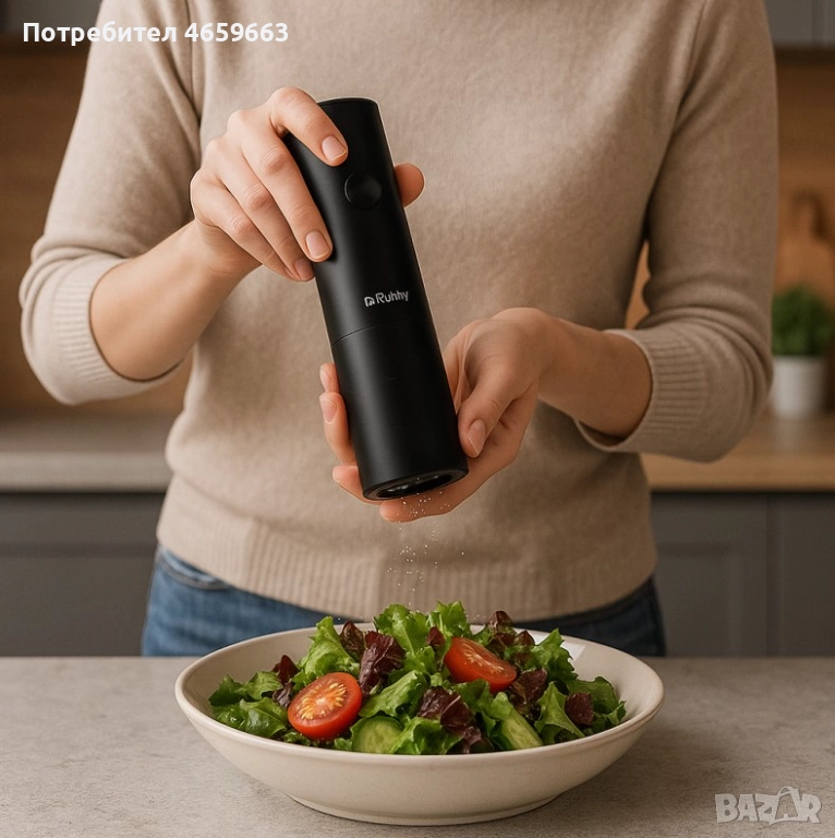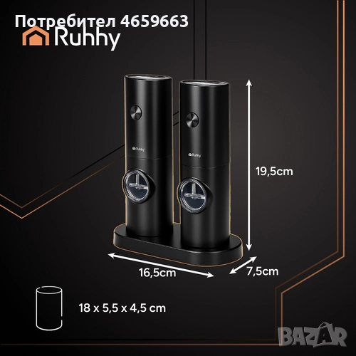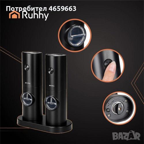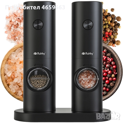RUHHY Електрически мелница за пипер и сол, комплект от 2 броя – стил, прецизност и вкус на вашата трапеза! 25558