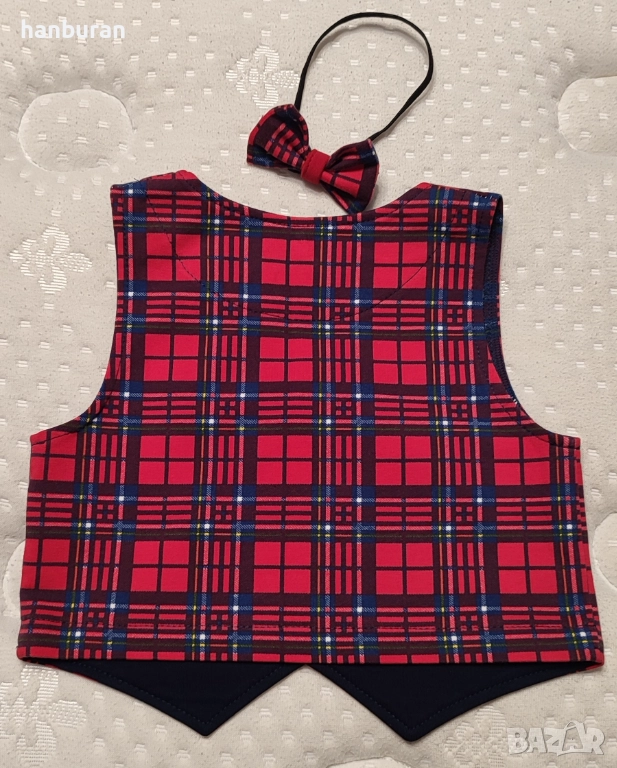 Коледен кариран бебешки елек с папийонка → Обява 52547488