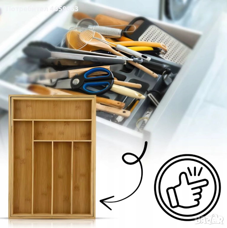 Приборите за хранене са чудесно допълнение към съдовете за хранене. Затова си заслужава да се грижите за тях и да ги съхранявате правилно, за да ви служат възможно най-дълго по време на хранене. Затова е добре да осигурите удобен и свободен достъп до ножове, вилици, лъжици и чаени лъжички в чекмеджето. Изберете продукт, който отговаря на вашия вкус – вложка за плъзгащо се чекмедже, изработена от бамбуково дърво, която ще ви позволи да съхранявате приборите за хранене в хигиенични условия.