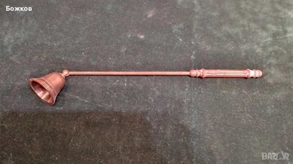 Стар уред за гасене на свещи. Дълга дръжка с орнаменти. Масивен месинг.