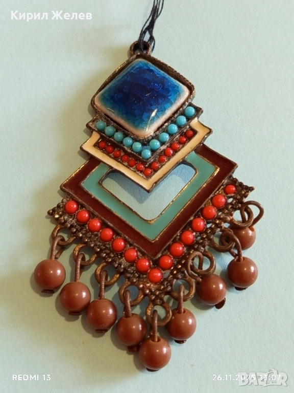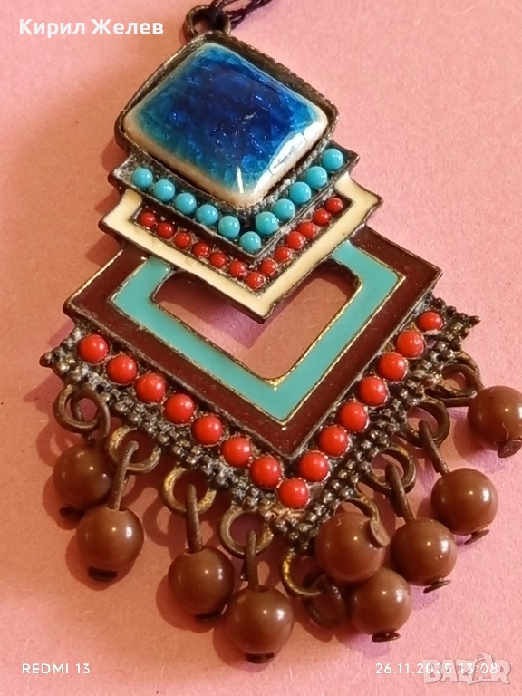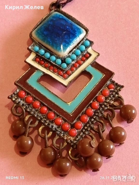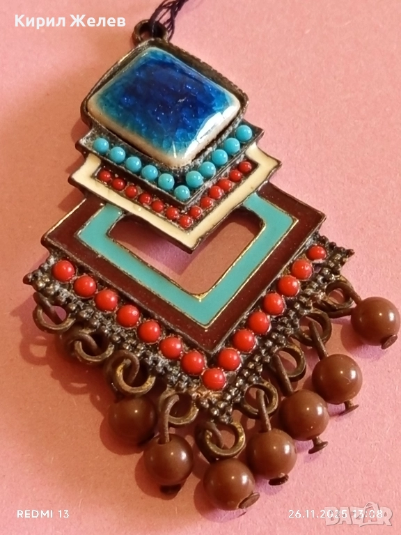 Изящна Тибетска висулка с емайл тюркоаз и корал мъниста АРТ БИЖУ 52214