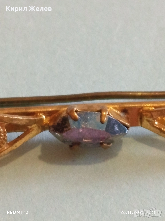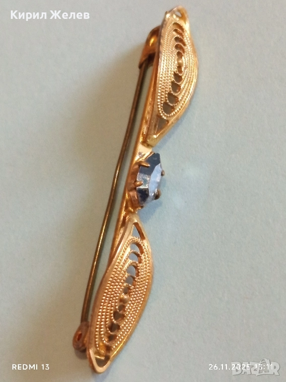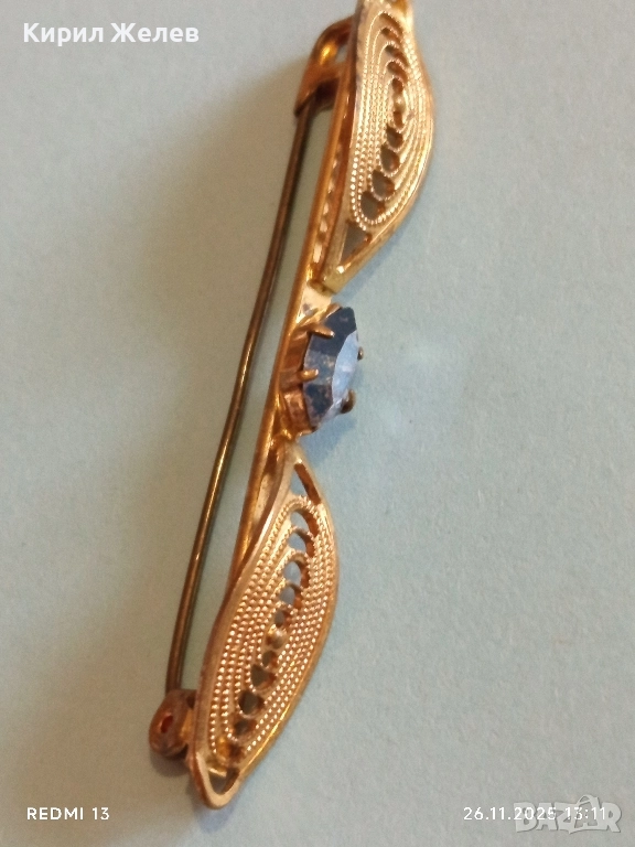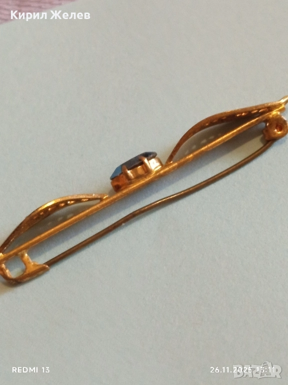 Златиста брошка с овални елементи и син камък ТОПАЗ 52187
