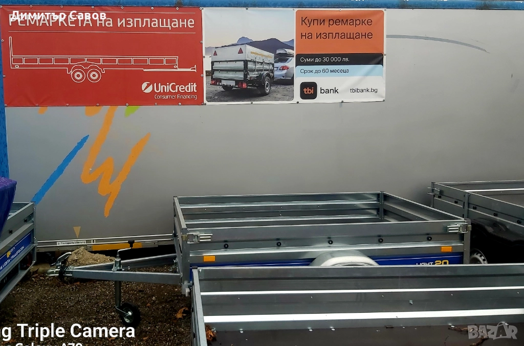 ЧИСТО НОВО РЕМАРКЕ! ЦЕНАТА Е С ПЛАТЕНО ДДС! Управлява се с категория B, до 750кг., без застраховка и винетка. Всички необходими документи за регистрация в КАТ. Цена за регистрация в КАТ, е приблизително 45 лв. Транзитни номера, приблизително 33 лв. Извършваме и регистрация на новозакупеното ремарке в КАТ срещу допълнително заплащане и пълномощно от нотариус. Възможност за лизинг!