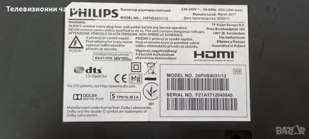 Дефектен Main Board 715G8232-M01-B00-004T 705TQGPL0203 от Philips 24PHS4031/12 TPM236WH2-WHBN00.K , снимка 1 - Части и Платки - 52547907 Дефектен Main Board 715G8232-M01-B00-004T 705TQGPL0203 от Philips 24PHS4031/12 TPM236WH2-WHBN00.K , снимка 2 - Части и Платки - 52547907 Дефектен Main Board 715G8232-M01-B00-004T 705TQGPL0203 от Philips 24PHS4031/12 TPM236WH2-WHBN00.K , снимка 3 - Части и Платки - 52547907 Дефектен Main Board 715G8232-M01-B00-004T 705TQGPL0203 от Philips 24PHS4031/12 TPM236WH2-WHBN00.K , снимка 4 - Части и Платки - 52547907 Дефектен Main Board 715G8232-M01-B00-004T 705TQGPL0203 от Philips 24PHS4031/12 TPM236WH2-WHBN00.K , снимка 5 - Части и Платки - 52547907 Дефектен Main Board 715G8232-M01-B00-004T 705TQGPL0203 от Philips 24PHS4031/12 TPM236WH2-WHBN00.K , снимка 6 - Части и Платки - 52547907 Дефектен Main Board 715G8232-M01-B00-004T 705TQGPL0203 от Philips 24PHS4031/12 TPM236WH2-WHBN00.K , снимка 7 - Части и Платки - 52547907 Дефектен Main Board 715G8232-M01-B00-004T 705TQGPL0203 от Philips 24PHS4031/12 TPM236WH2-WHBN00.K , снимка 8 - Части и Платки - 52547907 Дефектен Main Board 715G8232-M01-B00-004T 705TQGPL0203 от Philips 24PHS4031/12 TPM236WH2-WHBN00.K , снимка 9 - Части и Платки - 52547907 Дефектен Main Board 715G8232-M01-B00-004T 705TQGPL0203 от Philips 24PHS4031/12 TPM236WH2-WHBN00.K , снимка 10 - Части и Платки - 52547907 1/10