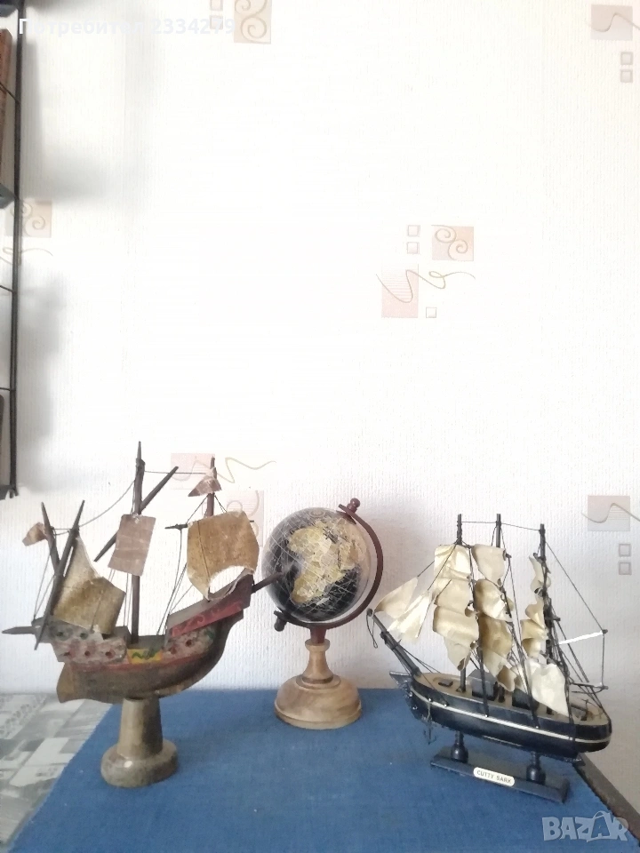 соца: момичето е с размери 33х17см., цена 4€.; двойка в носии, размери 25х17см., цена 4€; кукерова маска за стена, размери 33х20см., цена 3€.; N:3 автентични фигури от ръчно изработени от плат, кожа и смола лепило, размери 29х14см., цена 9€. ; N:4 дървен глобус с континенти размери 10х7см., цена 8€.; N:5 стар ръчно изработен дървен кораб c размери , цена 8€.; N:6 светеща сувенирна топка с Холадски мотив, цена 4€.; N:7 стар ръчно изработен макет ба кораб, сувенирни декорация, цена 8€.