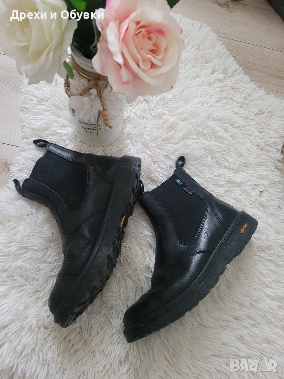 Висококачествени дамски боти от ЕСТЕСТВЕНА кожа. Моделът е изключително удобен и здрав, с еластични странични панели за лесно обуване. Подметката е Vibram – известна със своята издръжливост, отлично сцепление и комфорт при ходене. Подходящи са както за ежедневие, така и за по-динамична среда.
