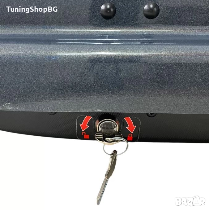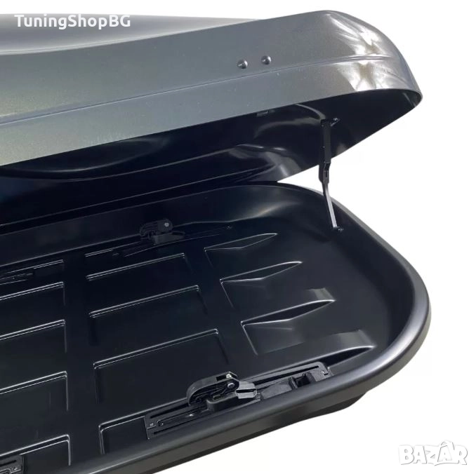 Висок клас кутия за багажник за кола със защита за забравено заключване, изработена от висококачествена пластмаса, подходяща за всяка една марка автомобил оборудвана с напречни греди на тавана.