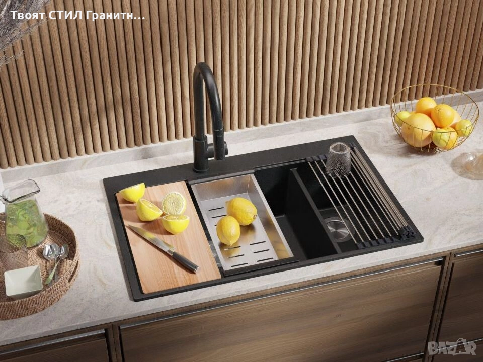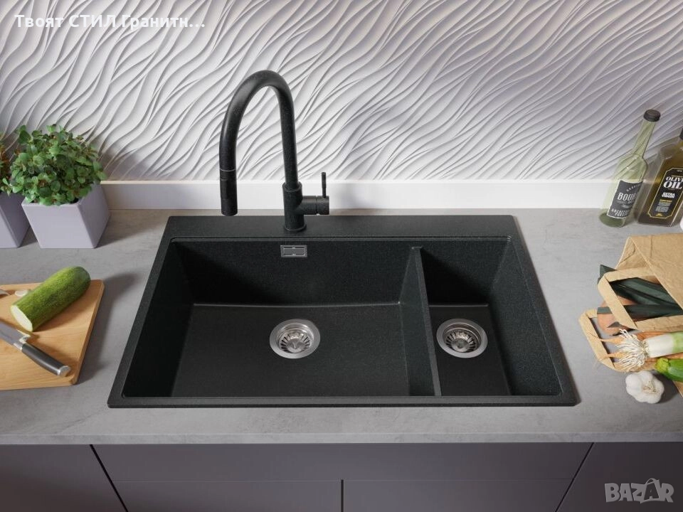 - Голяма двойна гранитна кухненска мивка за максимално удобство