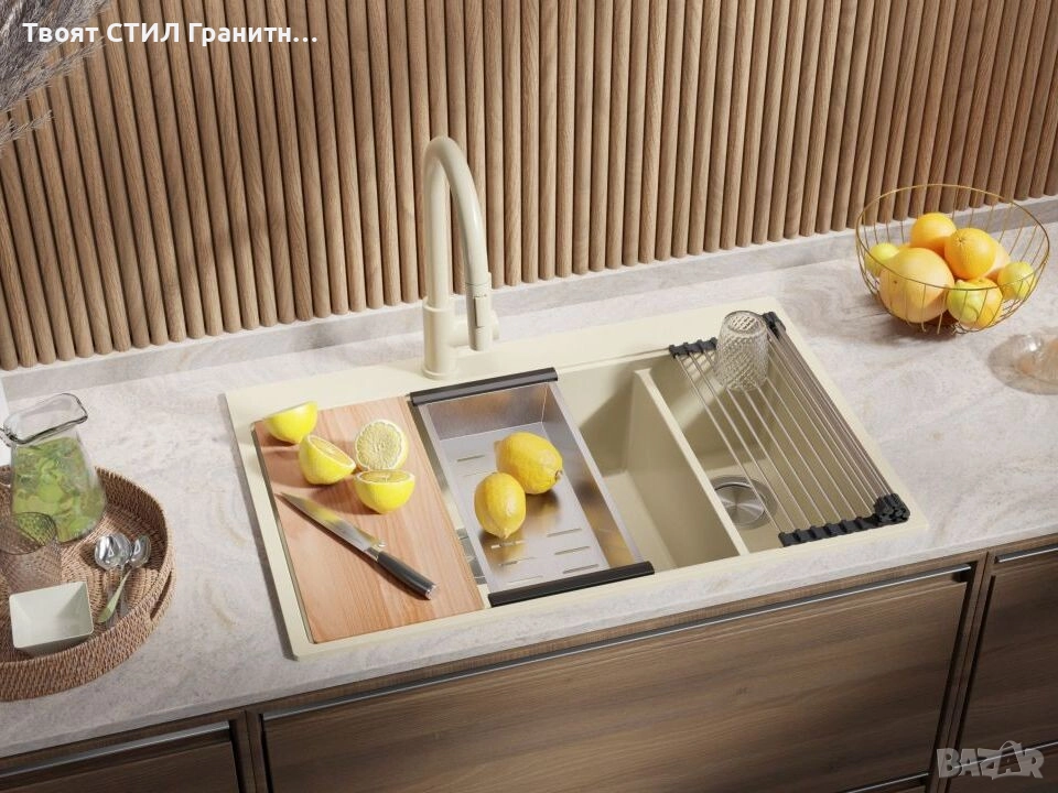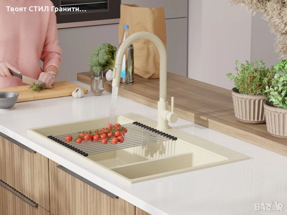 - Голяма двойна гранитна кухненска мивка за максимално удобство