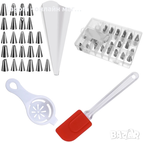 - БЕЗПЛАТНО: декоратор за сладкарски изделия с 24 накрайника, сепаратор за яйца, шпатула за тесто