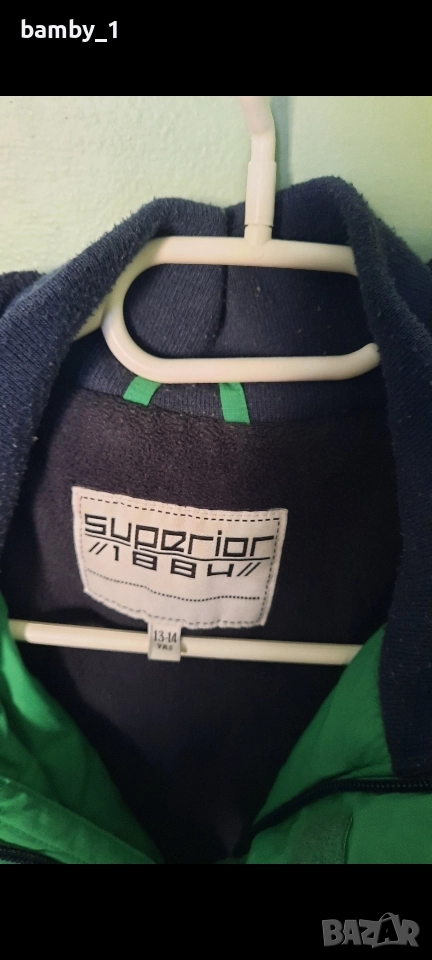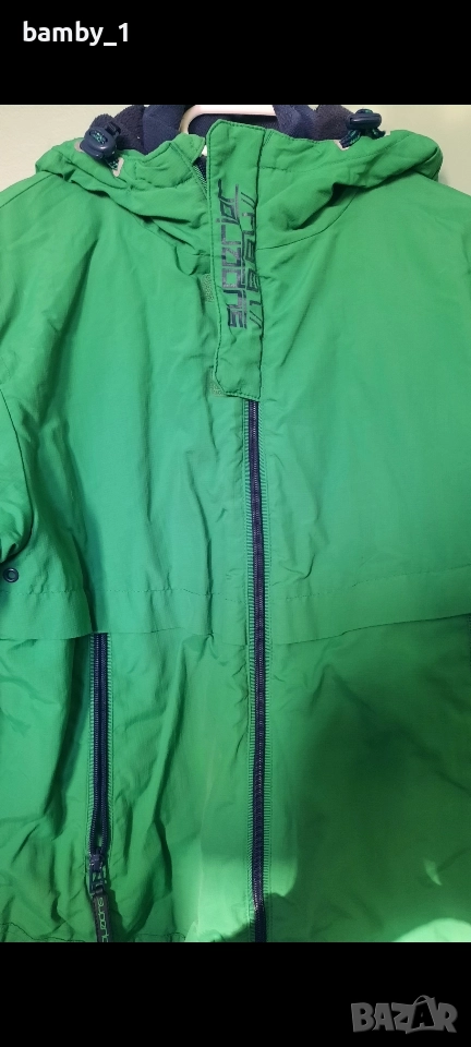 По етикет якето е за 13-14г. Носено, но много запазено. С поларена подплата и качулка.