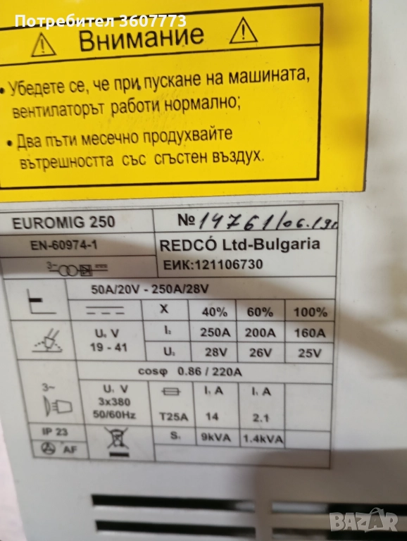 Телоподаващо REDCO 250 A професионално → Обява 52548776