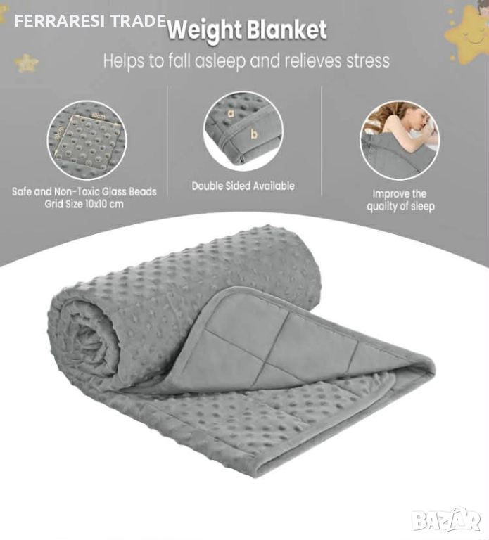 Тежко одеало / Утежнено одеяло ,сив 105 x 150 cm 4.5 kg, снимка 1 - Олекотени завивки и одеяла - 52549541 Тежко одеало / Утежнено одеяло ,сив 105 x 150 cm 4.5 kg, снимка 2 - Олекотени завивки и одеяла - 52549541 1/2