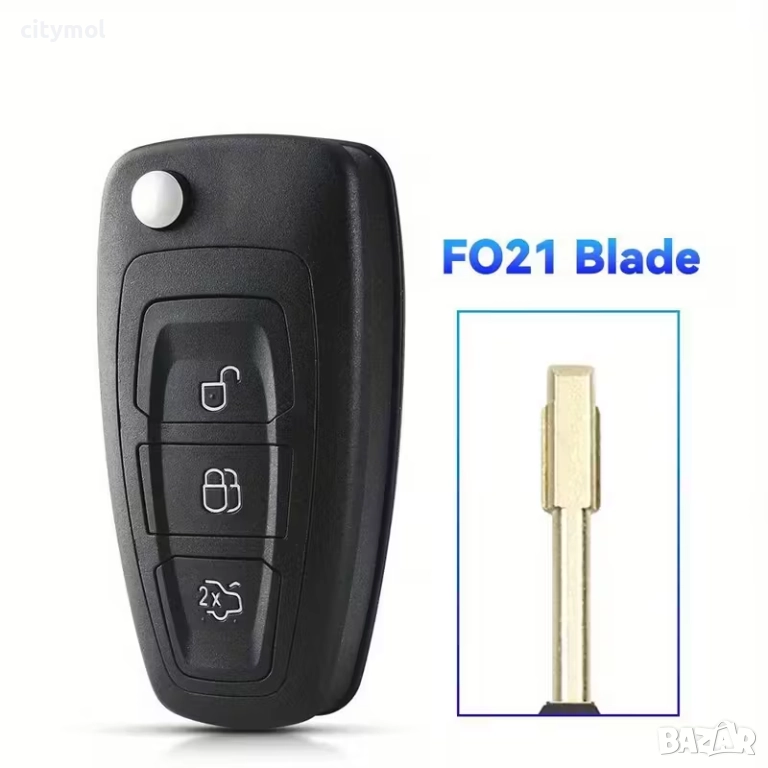 Калъф за ключ FORD с 3 бутона и острие за Focus Mondeo C-Max Ranger Transit Fiesta и др, острие FO21