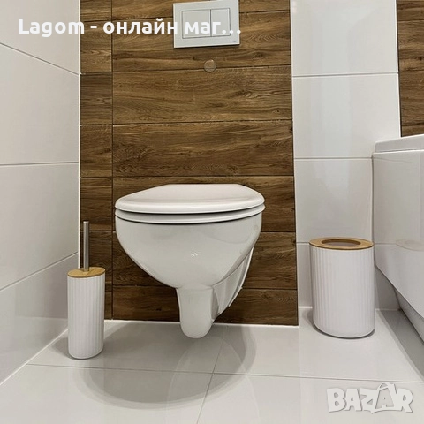 - ТОАЛЕТНА ЧЕТКА И КОШЧЕ ЗА ОТПАДЪЦИ С БАМБУКОВИ КАПАКОВЕ - стойката за тоалетна четка е проектирана с оглед на функционалността и естетиката. Бамбуковият капак осигурява хигиена и комфорт, а ръкохватката на четката от стомана е издръжлива и устойчива на корозия . Кошчето за отпадъци с бамбуков капак е снабдено с голям, кръгъл отвор , който не само предпазва торбичката от изплъзване , но и придава елегантен вид на цялото изделие.