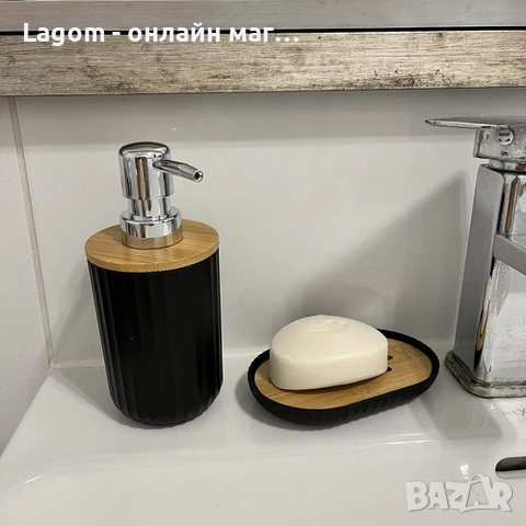 - САПУННИК С БАМБУКОВА ВЛОЖКА И ДОЗАТОР ЗА САПУН - сапунникът от комплекта е изработен от висококачествен PP материал, който се характеризира с трайност и устойчивост на влага. Бамбуковата вложка с напречни отвори ефективно отделя сапуна от водата, която се събира на дъното на сапунника, което удължава неговата трайност и улеснява поддържането му чист. Дозаторът за сапун се отличава с елегантно съчетание от материали – черен PP и бамбук. Сребърният дозатор, завинтван към бамбукова основа, създава стилен контраст, който не само изглежда естетично, но и добавя функционалност.