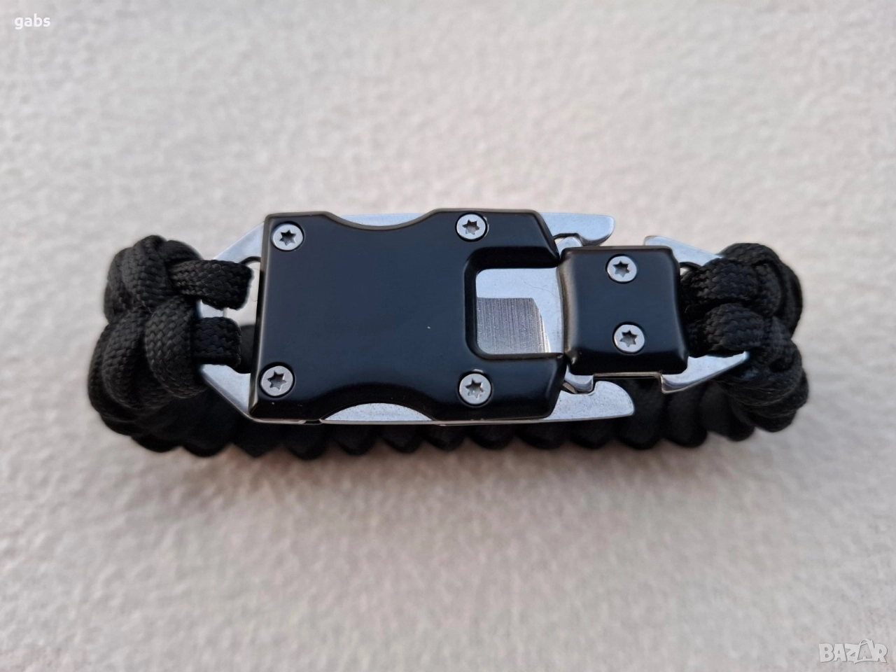 Паракордът, от който е изработена гривната, е изключително издръжлив и може да понесе натоварване над 100 кг.
