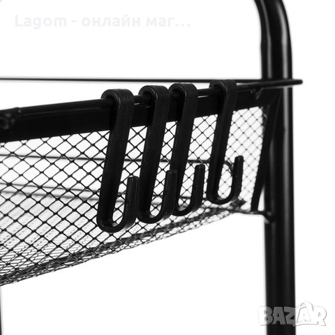 - ИЗДРЪЖЛИВА ВИСОКОКАЧЕСТВЕНА ЖЕЛЕЗНА КОНСТРУКЦИЯ - мобилната рафт е изработена от издръжливо и солидно желязо, с прахово покритие за елегантен, черен цвят . Желязото гарантира устойчивост на корозия и повреди , което прави рафта издръжлива и идеална за ежедневна употреба в различни условия, както в кухнята, банята, така и в офиса. Праховото покритие допълнително предпазва повърхността , придавайки й естетичен, матов вид.