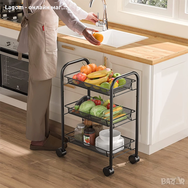 Етажерка на колелца с 3 нива за кухня, офис, баня Ruhhy