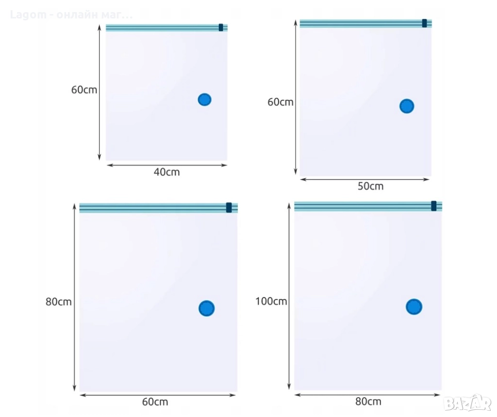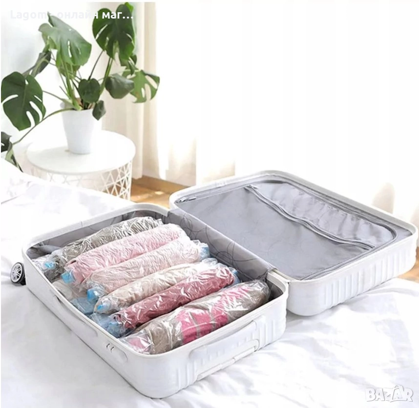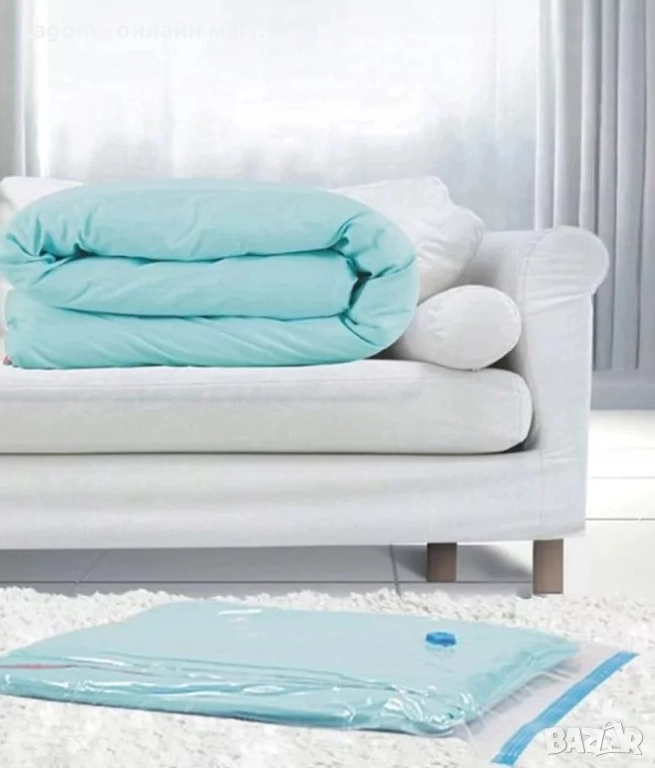 - СПЕСТЯВАНЕ НА МЯСТО - просто опаковайте предметите в торбата. Вакуумната торба след изсмукване на въздуха с обикновен прахосмукач, обемът й се намалява с до 80% . Това ви позволява да спестите много място.