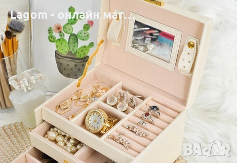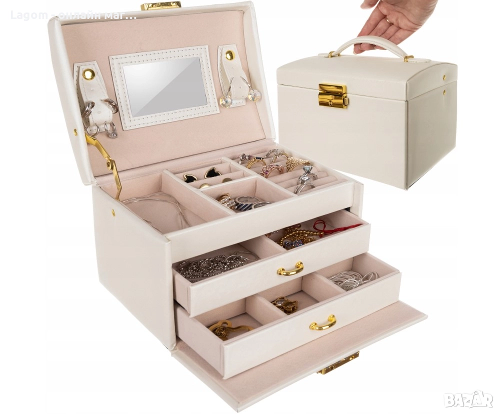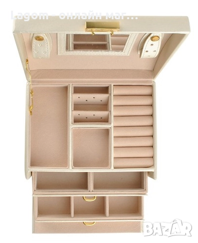 Кутия за бижута, органайзер с огледало и чекмеджета