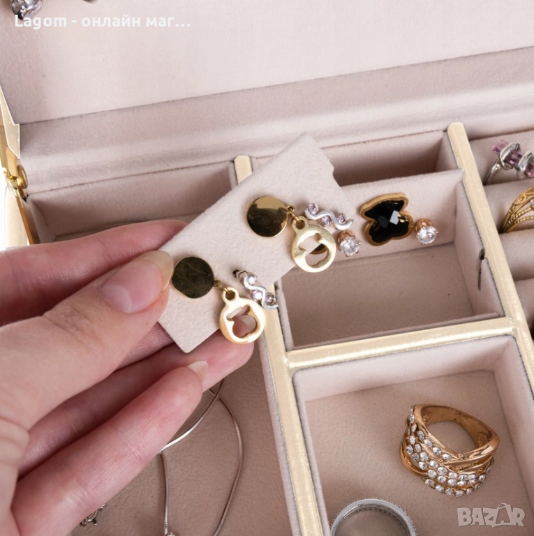 Кутията ще ви позволи да се грижите за бижутата си в перфектен стил, като ги предпазва от повреда, а също така ще ги покаже по красив начин. Използвайте продукт, специално създаден за тази цел, и се наслаждавайте на перфектно организирани и защитени ценности на едно място.