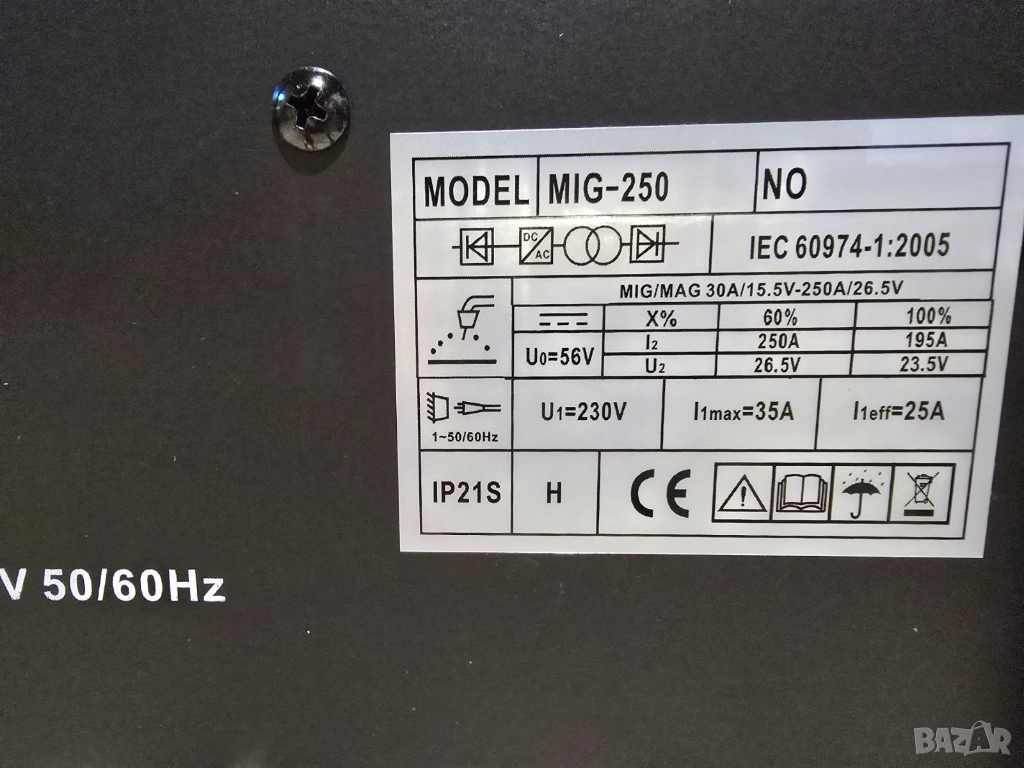 Регулиране на заваръчния ток/плавно/ 30-250 ампера, монофазни/220V/