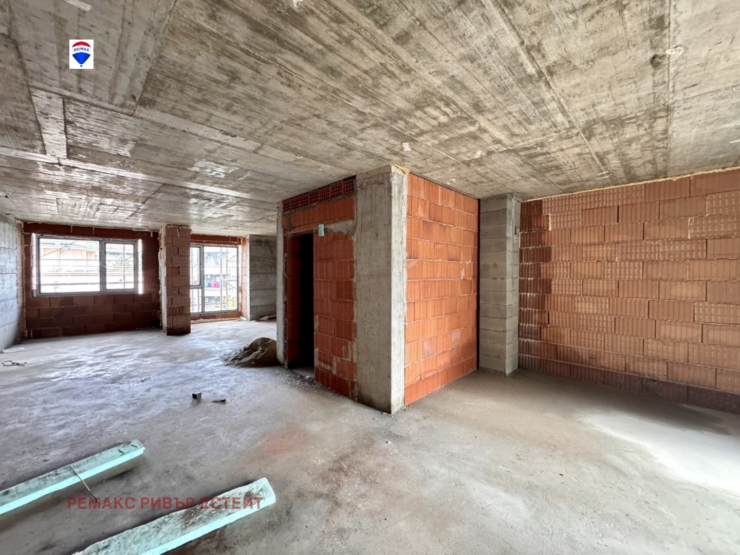 - Просторна всекидневна с кухненска част подходяща за обособяване на дневна зона, трапезария и кухня;