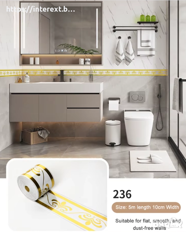 Придай на банята си усещане за елегантност и лукс с самозалепващия перваз Inter-236.