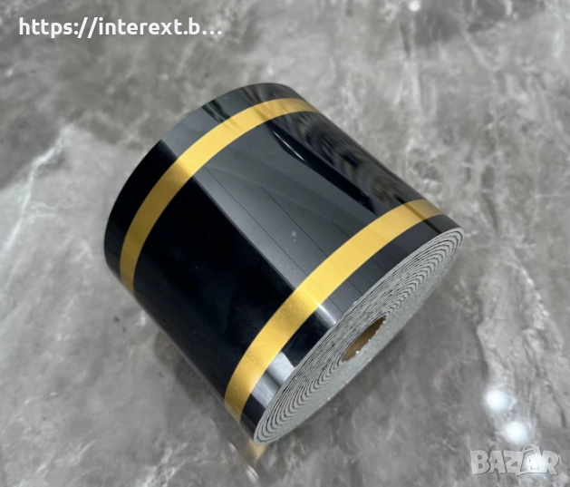 Добави смел, елегантен акцент с Inter-237. Черният фон и двете златни линии правят перваза идеален за модерни бани, кухни и дневни. Монтажът е без инструменти – отлепяш и залепяш.