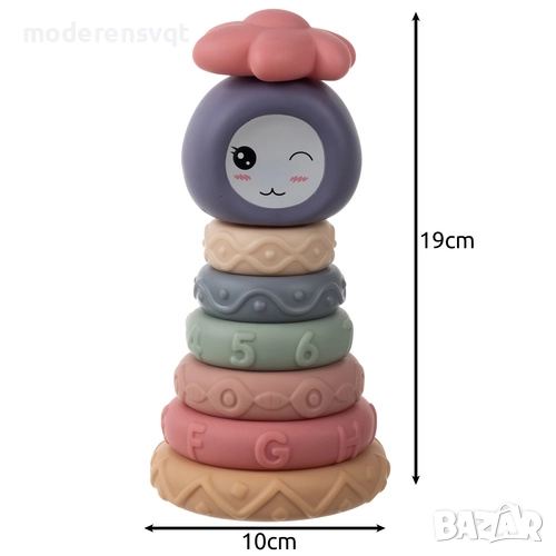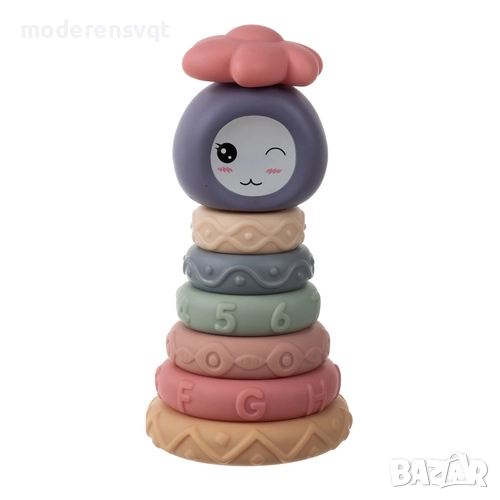 Сензорни блокове за деца, гумени меки креативни, Монтесори кула, пирамида 8 части
