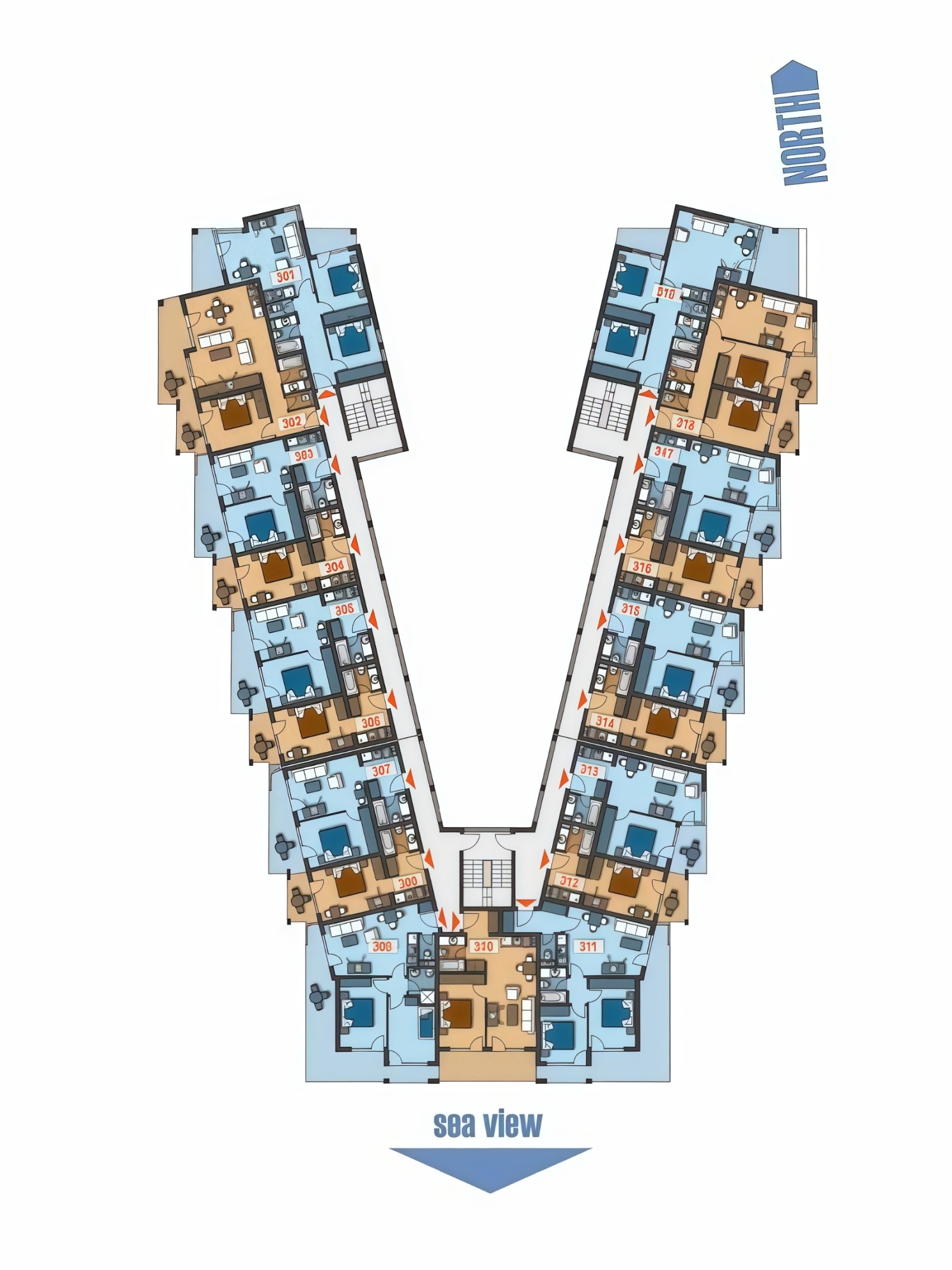 Почти всеки апартамент предлага зашеметяваща гледка към морето, а комплексът разполага с плувен басейн, частен паркинг и живописни градини - всичко необходимо за спокоен и приятен живот.