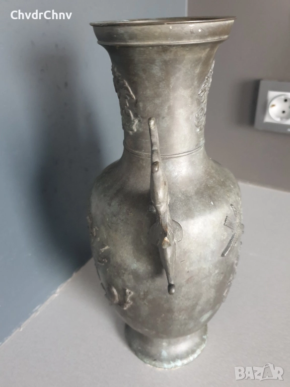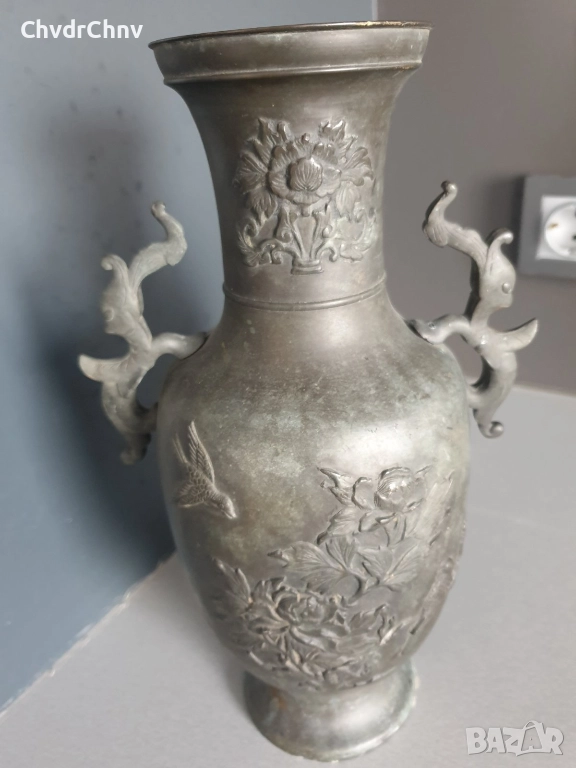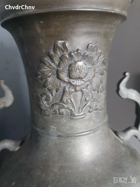 30см-3кг стара китайска бронзова ваза /фигурална/с птици и рози
