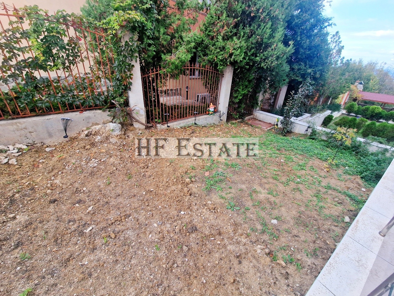 От терасата и дворчето има частична гледка море.