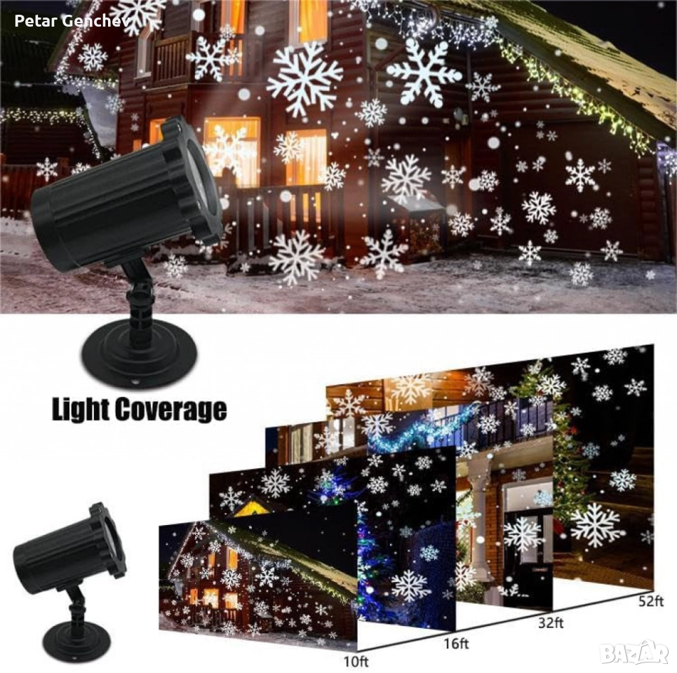 Водоустойчив LED проектор Снежинка за прожектиране на сняг → Обява 52551570