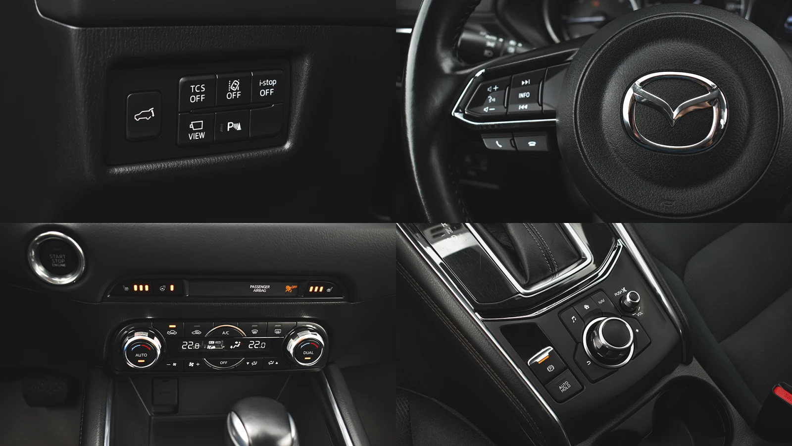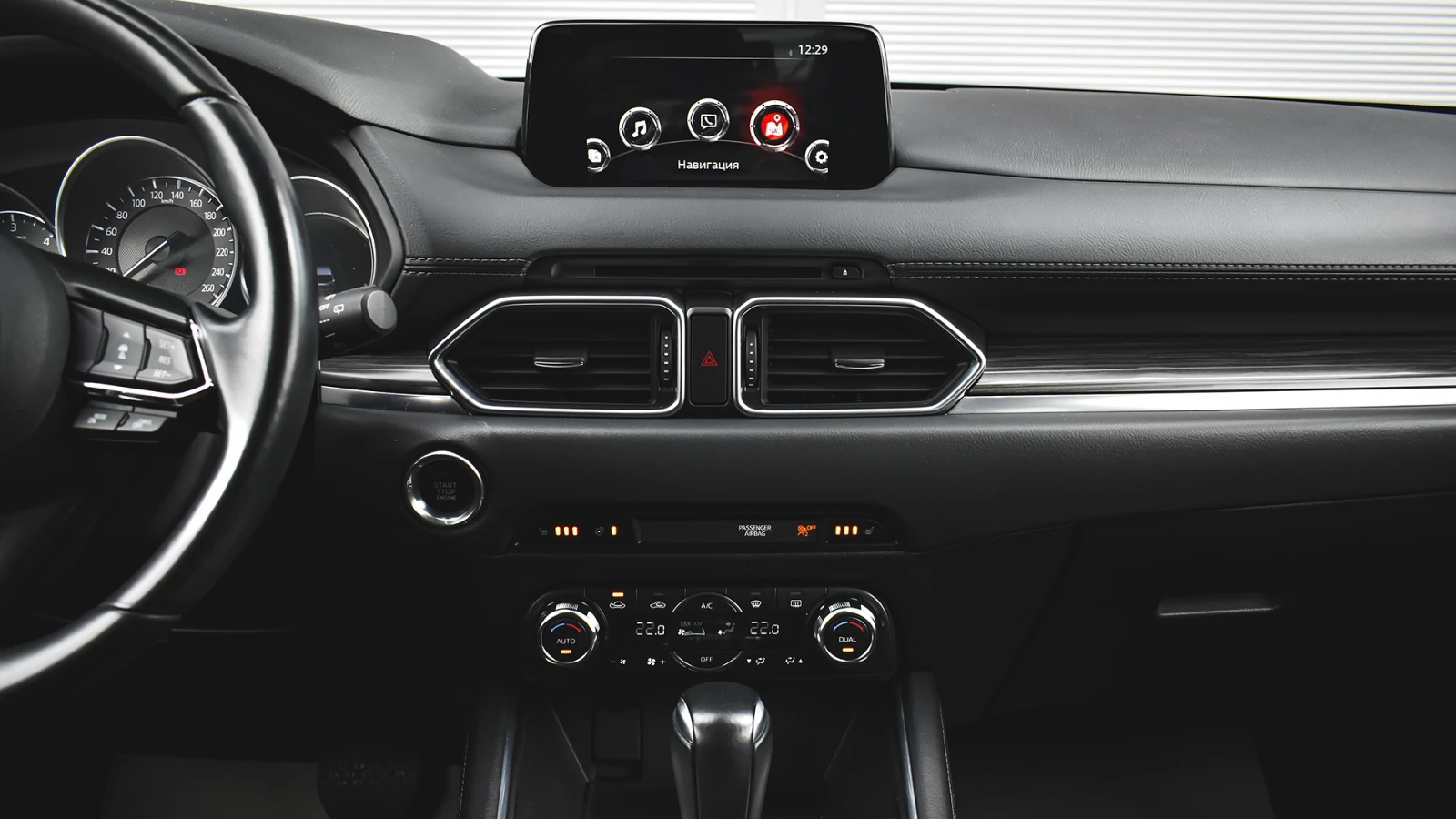 Автосвят ООД - официален представител на Opel и Mazda, предлага на Вашето внимание клиентски автомобил Mazda CX-5 Sports Line 2. 2 SKYACTIV-D 4x4 Automatic Допълнителни услуги: - лизинг; - сътрудничество при регистрация; - възможност за обратно изкупуване; - посредничество при застраховане; - посредничество при завеждане на щети при застрахователя. Цвят - Jet Black Metallic Apple CarPlay Android Auto Mazda алуминиеви джанти LED дневни светлини и задни габарити KODO дизайн AHM - 12 сегментни адаптивни LED матрични фарове MRCC - адаптивна система за оптимално поддържане и регулиране на зададена скорост от 0 до 200 км/ч MRCC Stop & Go - спира до 0 км/ч и след това автоматично потегля Цветна камера за обратно виждане HiFi аудиосистема BOSE Centerpoint2 HEAD UP display Автоматизирано отваряне и затваряне на задната врата на багажника RCTA - система, сигнализираща за приближаващи пешеходци, велосипедисти или автомобили при маневра на заден ход Rear SCBS - система, предотвратяваща сблъсък при движение назад със скорост от 2 до 8 км/ч DAA - система, следяща вниманието на водача, активна при скорост от 65 до 140 км/ч Auto Hold функция - задържа автомобила на място, независимо че е освободен педала на спирачката LKA - система, следяща за отклонение от лентата на движение със звуков сигнал, вибрация и срещуположна корекция на волана HBC - система за автоматично управление на къси / дълги светлини, в зависимост от трафика AFLS - LED предни фарове следящи кривата на завой LED фарове за мъгла LED задни светлини за задна скорост Акустични трислойни шумоизолационни стъкла на предните врати Подгряване на предните седалки - 3 степенно с ел. управление Отопление на волана с таймер за автоматично изключване след 30 минути Нагреватели в предното стъкло за размразяване в зоната на чистачките и колонката пред водача Преден и заден парктроник Разпознаване на пътни знаци Климатроник - двузонален автоматичен климатик SCBS - система, предотвратяваща сблъсък в градска среда при скорост от 4 до 80 км/ч Електрохроматично огледало за обратно виждане Автоматично включване на фаровете - сензор за светлина Автоматично включване на чистачките - сензор за интензивност на дъжда Допълнителен USB за предните места и 2 USB входа за задните места и 12V изход Тонирани задни стъкла 70%, с UV и топлинна защита G-Vectoring Control SKYACTIV BODY структура на купето ABS / EBD/ EBA антиблокираща спирачна система, с разпределение на спирачното усилие и спирачен асистент за екстремно спиране DSC / TCS системи за динамичен контрол на траекторията и срещу пробуксуване и поднасяне на автомобила BSM - радарна система за следене на мъртвата зона 8 въздушни възглавници - предни, странични и завеси за всички места 3PSB - автоматични 3-точкови предпазни колани за всички места ISOFIX - система за монтиране на детско столче на задните външни места Active headrest - активни предни подглавници, предпазващи от травми при камшичен удар ESS - автоматично включване на аварийните мигачи при рязко спиране HHA - система за подпомагане при потегляне по наклон TPMS - система следяща налягането на гумите чрез директно измерване SCRS - реактивна система, предотвратяваща сблъсък след камшичен удар STI - активиране на мигачите с леко докосване на превключвателя и автоматично изключване след 3 такта Имобилайзер Подгряване на страничните огледала OPTITRON - LED просветка на контролните уреди на таблото в цвят лунно бяло и регулиране на яркостта Телескопичен волан с регулиране по висо