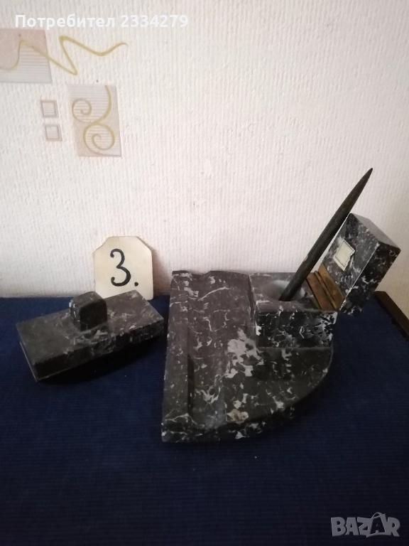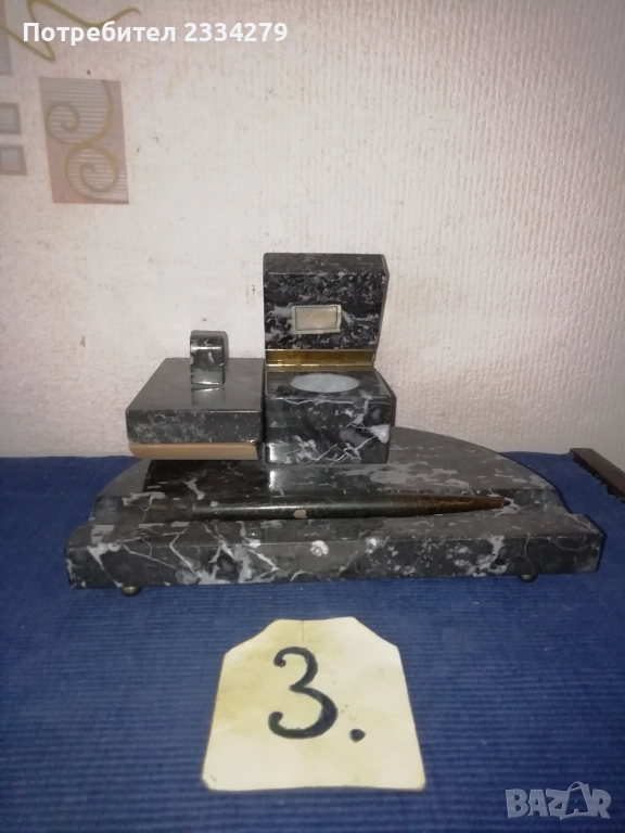 бронз, размери 30х30см.,височина 22см., цена 65€.; N:3 стара мраморна немска мастилница, попивателна, нож за пликове и перодръжка всичко ръчна изработка от мрамор,размери 25х16см.,височина 10см.,цена 40€.